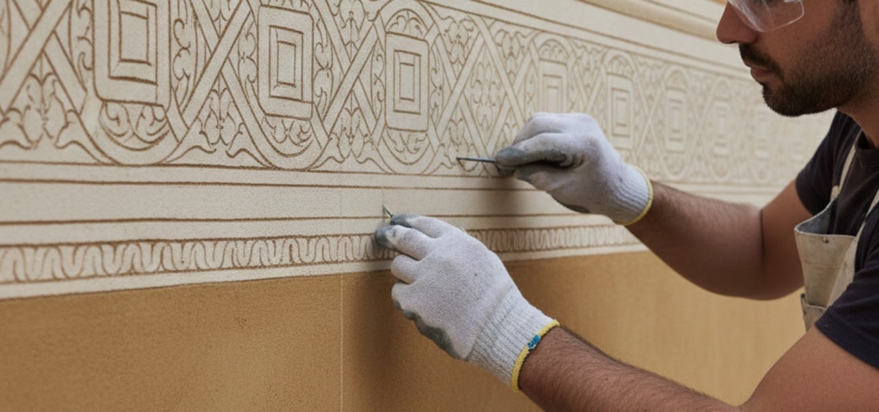 Sgraffito o Graffito una tecnica di decorazione nobile e antichissima, realizzata attraverso la rimozione di strati di calce superficiali a rivelare l’intonaco colorato sottostante. I motivi rappresentati sono per lo più decorativi
